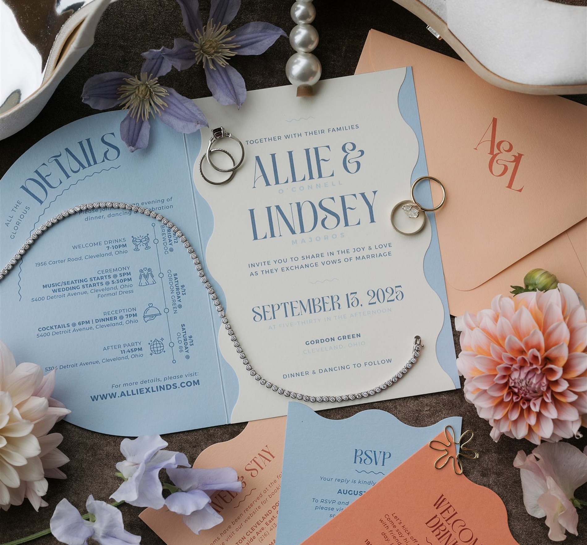 Create the perfect introduction to your big day with custom wedding invitations and coordinating day-of stationery. We’re excited to collaborate with you on a design that reflects the love you share and the life you’ve built together.