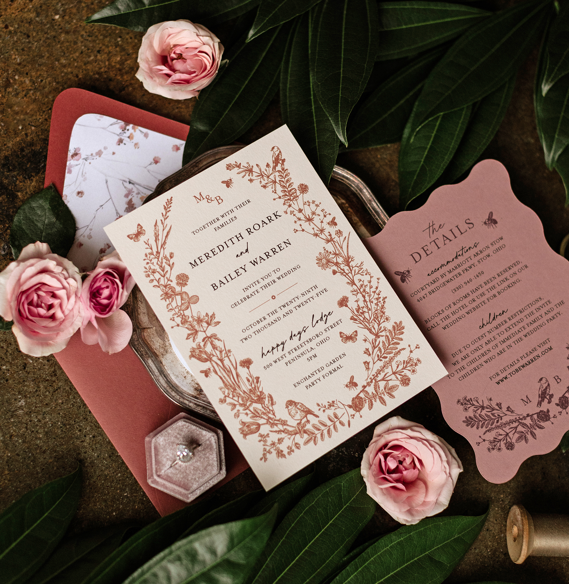 Custom invitations are one of a kind designs created exclusively for you and only you. Throughout the design process, we will work together to bring your vision to life.